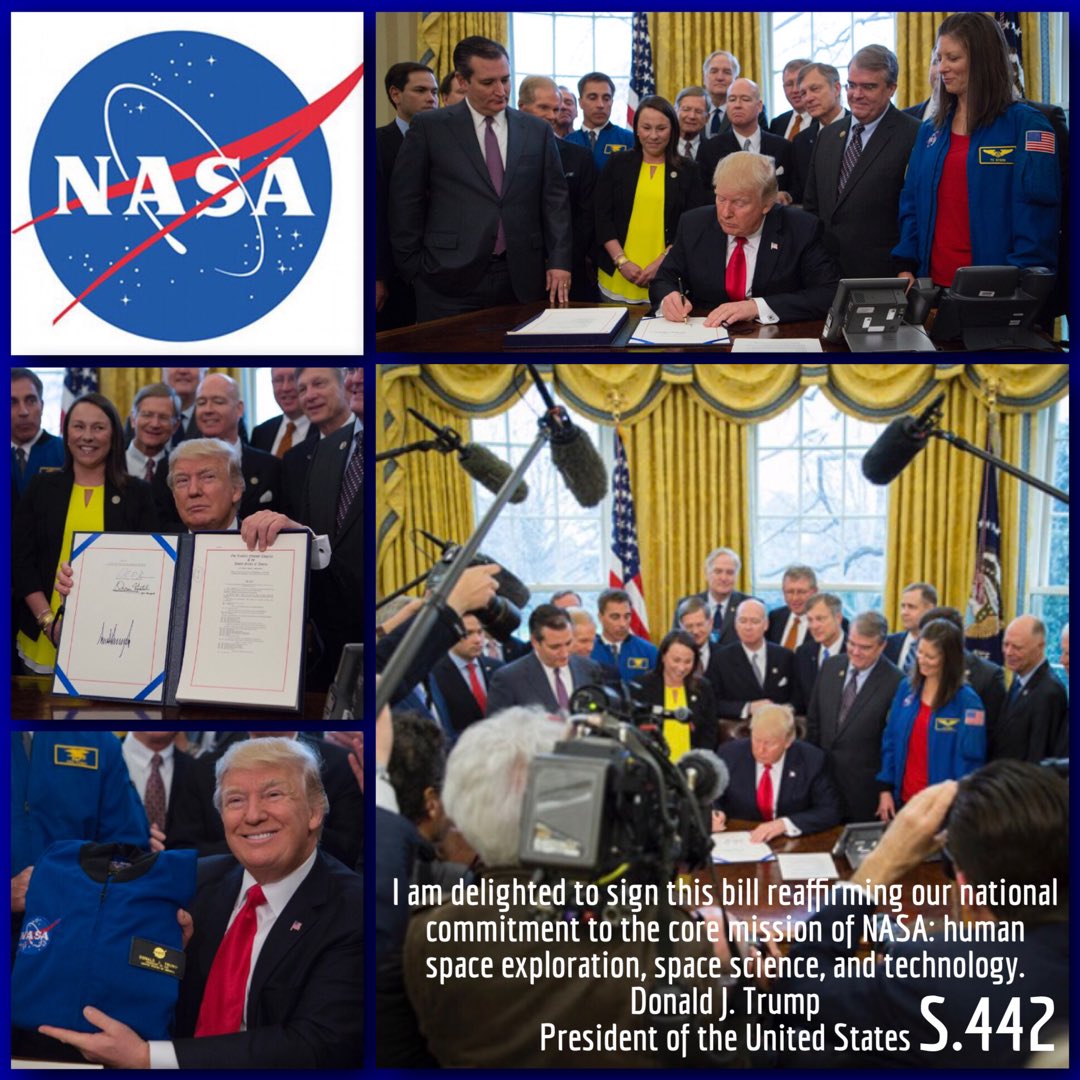 President Donald Trump signed a bill into law on Tuesday that authorizes $19.5 billion in NASA funding for the 2018 budget year and adds human exploration of Mars as an agency objective, The Associated Press reports.