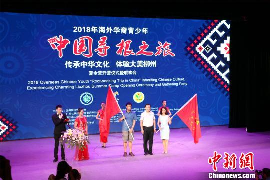 中新网柳州6月21日电(林馨)2018年海外华裔青少年“中国寻根之旅”夏令营,20日晚在广西柳州市艺术中心举行开营仪式。来自美国100多名华裔青少年将在柳州市开展为期两周的中华文化之旅。